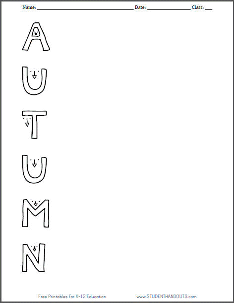 Autumn Free Printable Acrostic Worksheet Student Handouts by studenthandouts.com