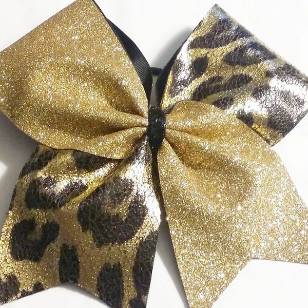 Cheer Bow Gold Glitter Gold Cheetah Animal Print Add A Name by jerseybows.com