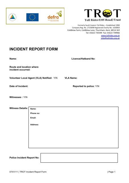 Incident Report Form Toll Rides