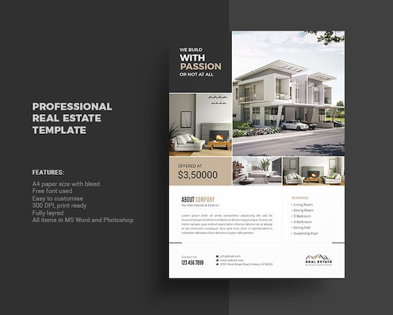 Real Estate Flyer Template Photoshop And Ms Word Template Etsy