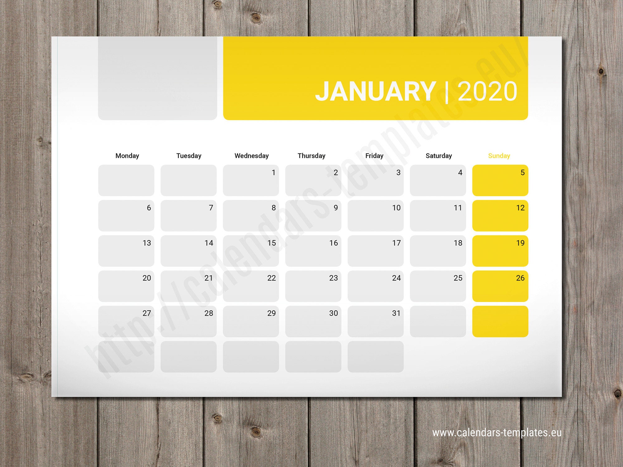 Printable Editable 2020 Clean And Simple Desk Calendar Monthly