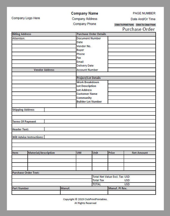 2020 Purchase Order Template Fillable Printable Pdf Forms