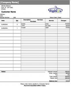 Dry Cleaning Service Receipt Template Business Microsoft Excel