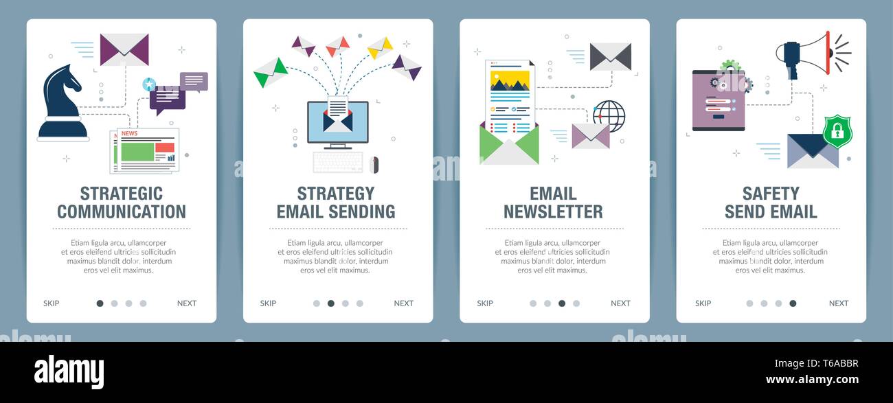 Vector Set Of Vertical Web Banners With Communication Strategy