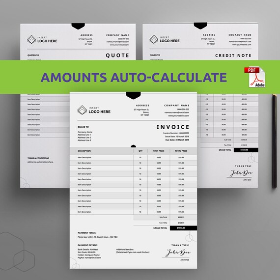 Bundle Bill Invoice Business Invoice Receipt Billing Etsy
