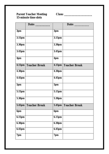 Parent Teacher Meetings Sign Up Sheets Teaching Resources