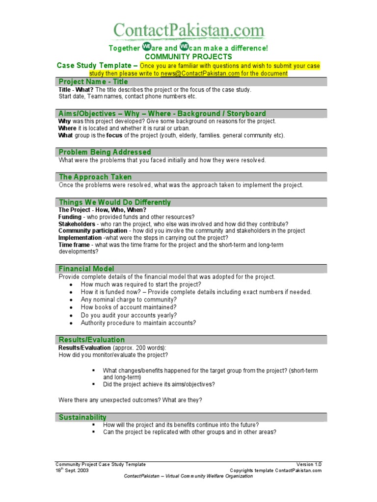 Community Projects Case Study Template Pdf