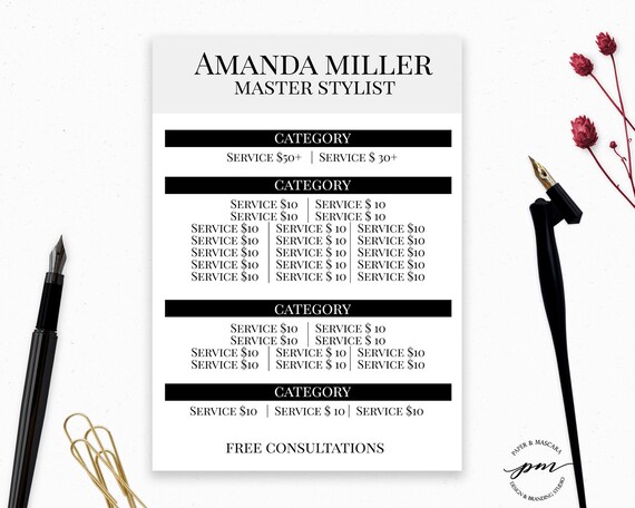 Personalized Hair Salon Price List Template Hair Stylist Etsy